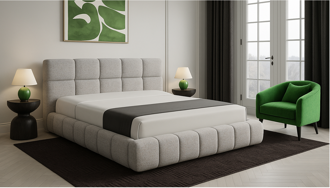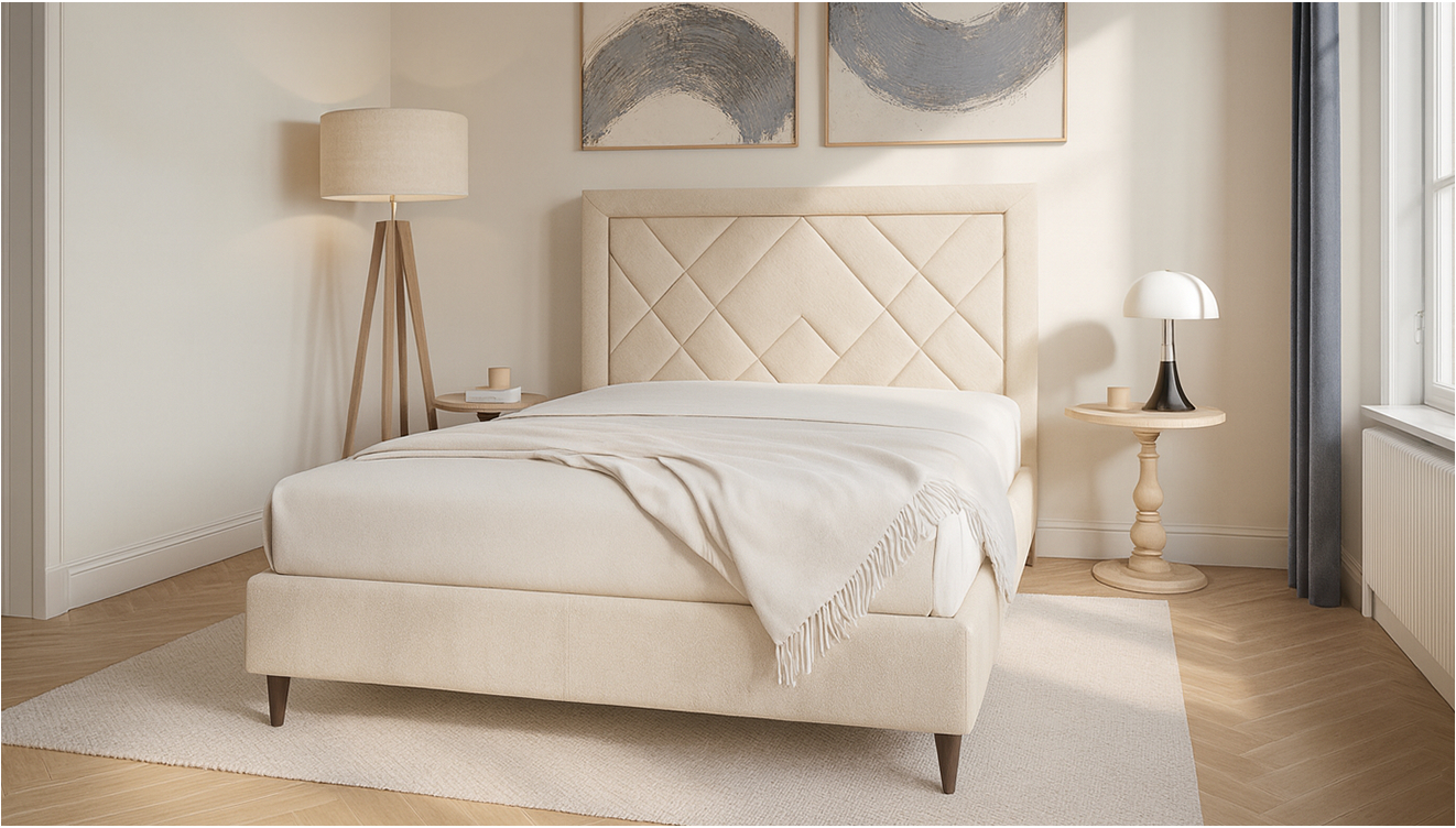 Un design géométrique subtil qui habille la chambre avec élégance.